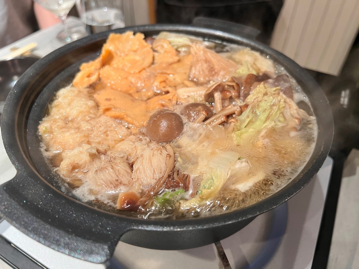 界隈(?)で有名な名店ワインと鍋。いってみたいとしばらく思い続けようやく行けました。 現職のオフィスから一応徒歩圏内にあり、会社の同チームメンバーと一緒に。