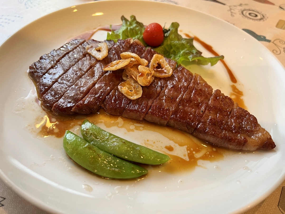 味は言わずもがな、皿で出てくるので絶妙な焼き加減で最後まで食べることができ、 鉄板熱々ステーキも良いですがこういうのも良いなと思わされます。