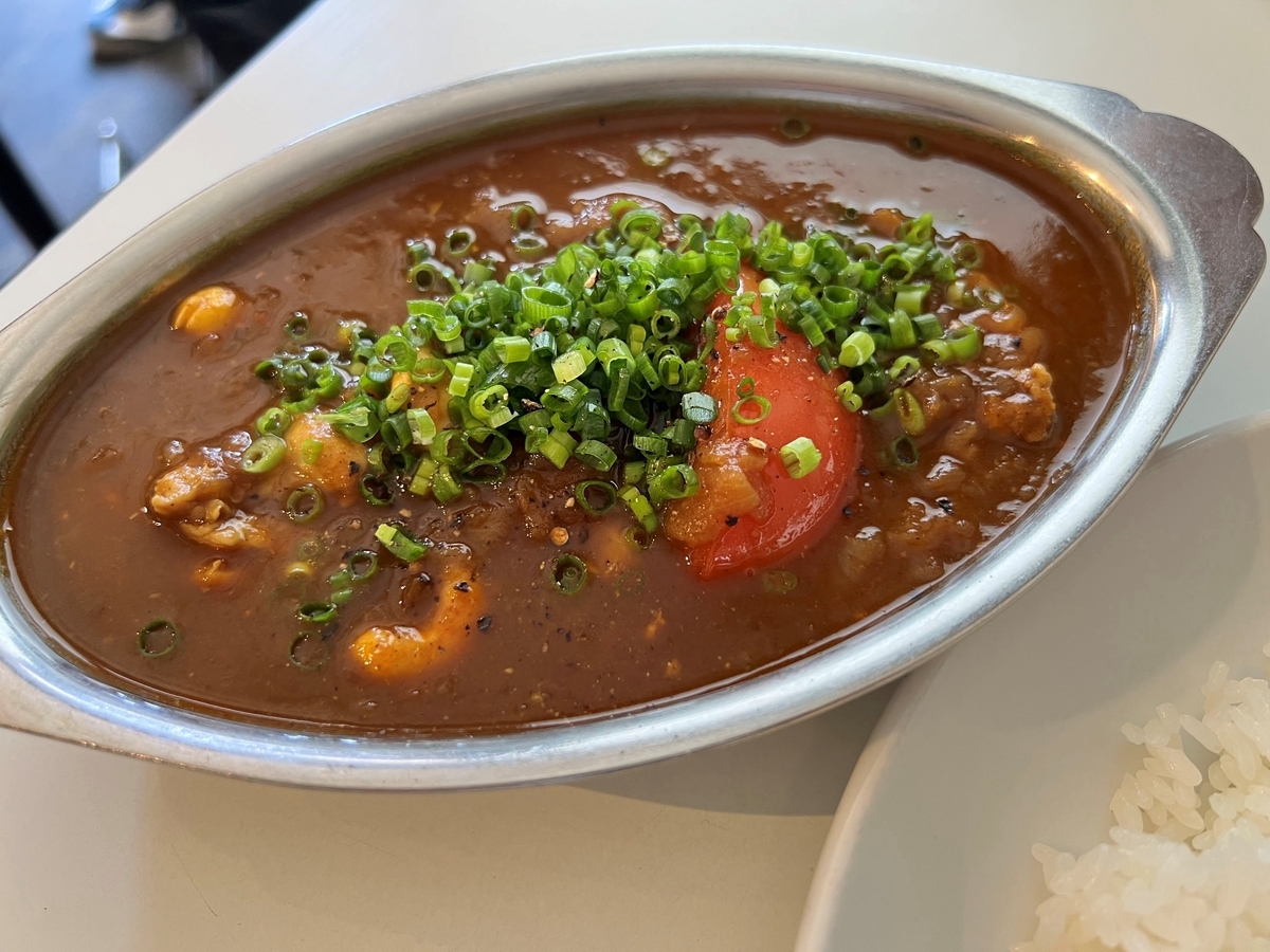 比較的辛さ控えめのトマト系?カレーを頼んだような気がする。 よく煮込まれた旨味たっぷりのカレー、非常に美味でした。 なかなか他にあんまり類を見ない独自のカレー感があって楽しかった。